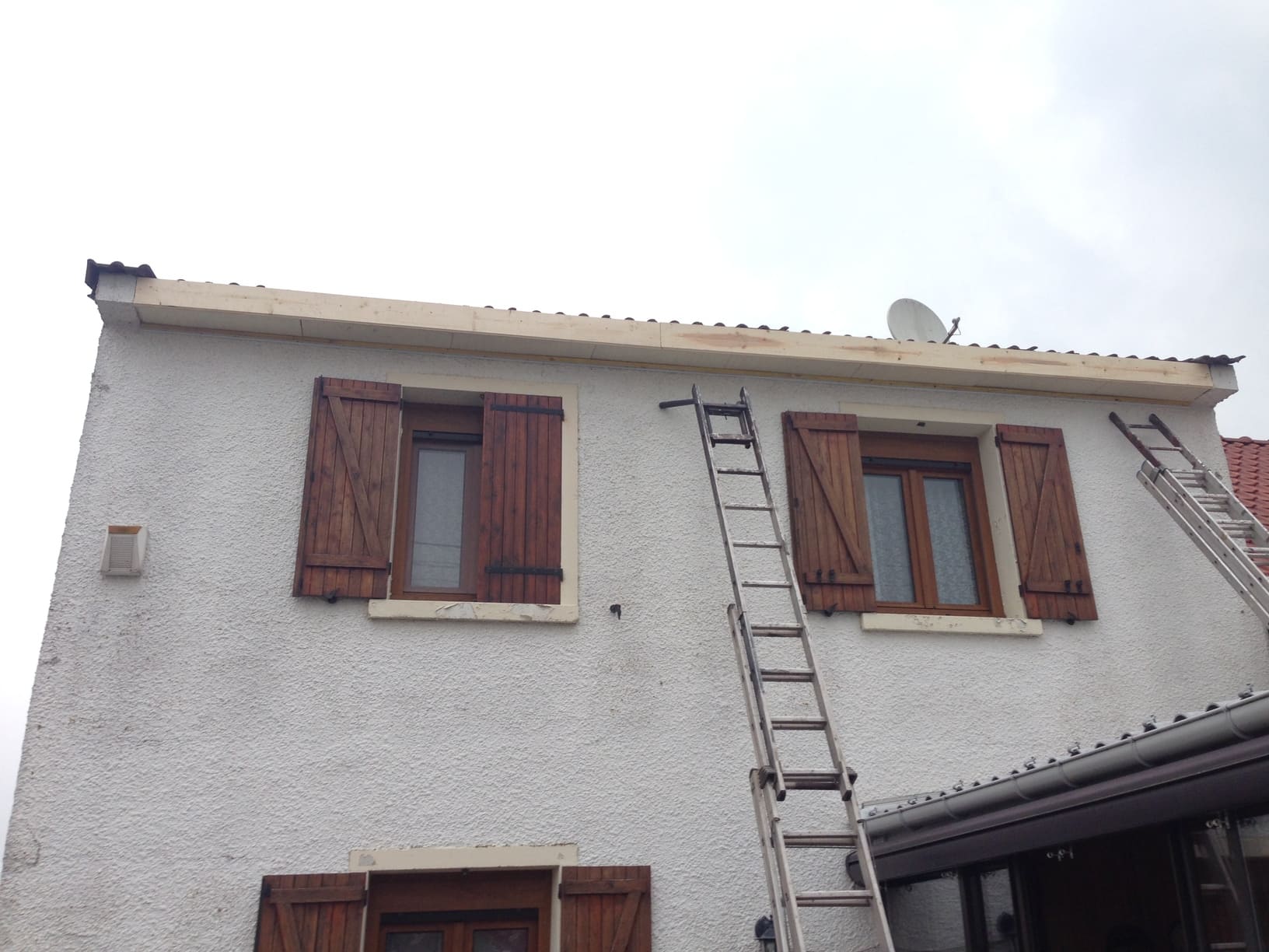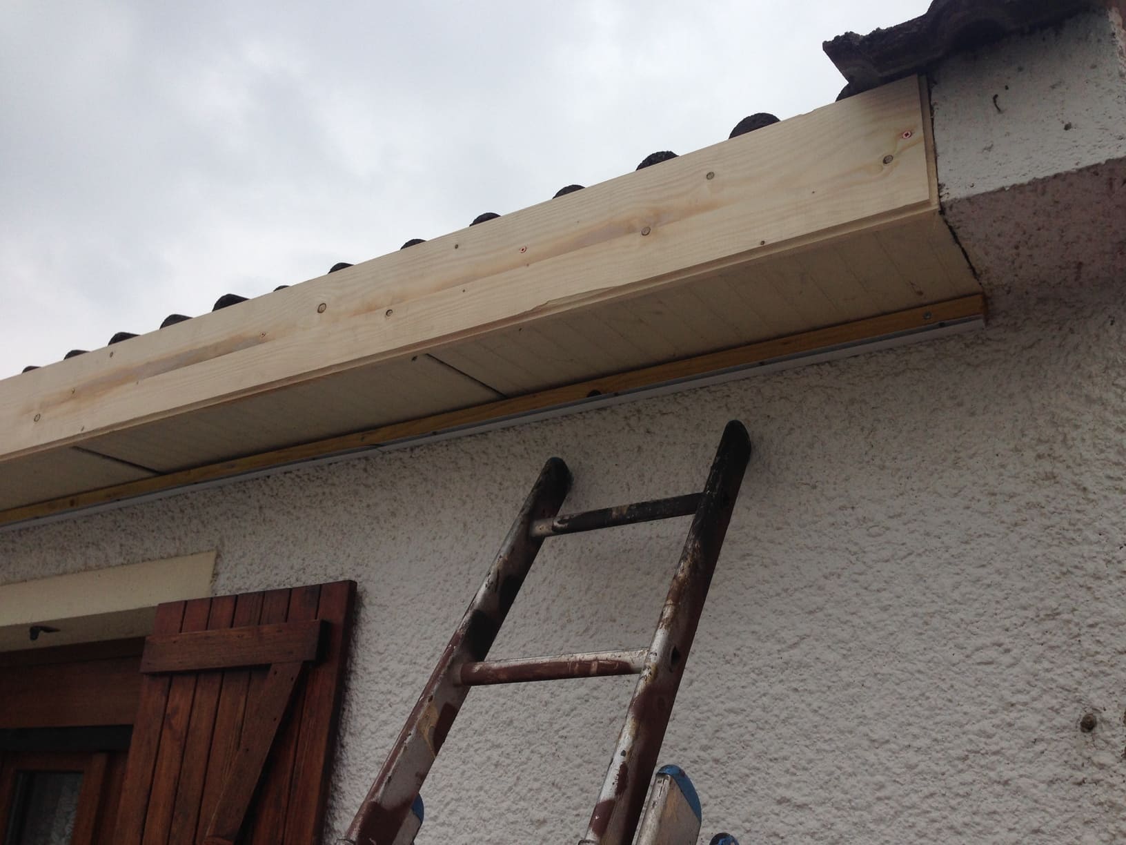 Démontage de l’ancienne gouttière et pose de gouttière et de cache moineaux en pvc
